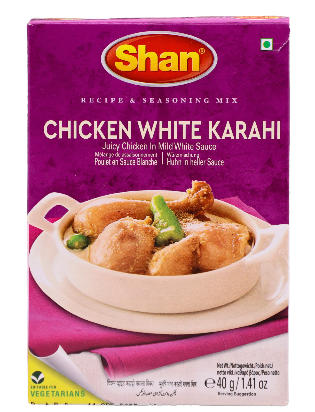 Zutaten: Speisesalz, Koriander, Roter Chili, Knoblauch, Ingwer, Schwarzer Pfeffer, Weißer Pfeffer, Kurkuma, Kreuzkümmel,Säure:Zitronensäure,Zimt, Getrocknete, Zwiebeln, Maltodextrin, Hydrolysiertes, Soja Peotein, Rohrzucker, Rapsöl,Anbackschutzmittel: Siliziumdioxid.